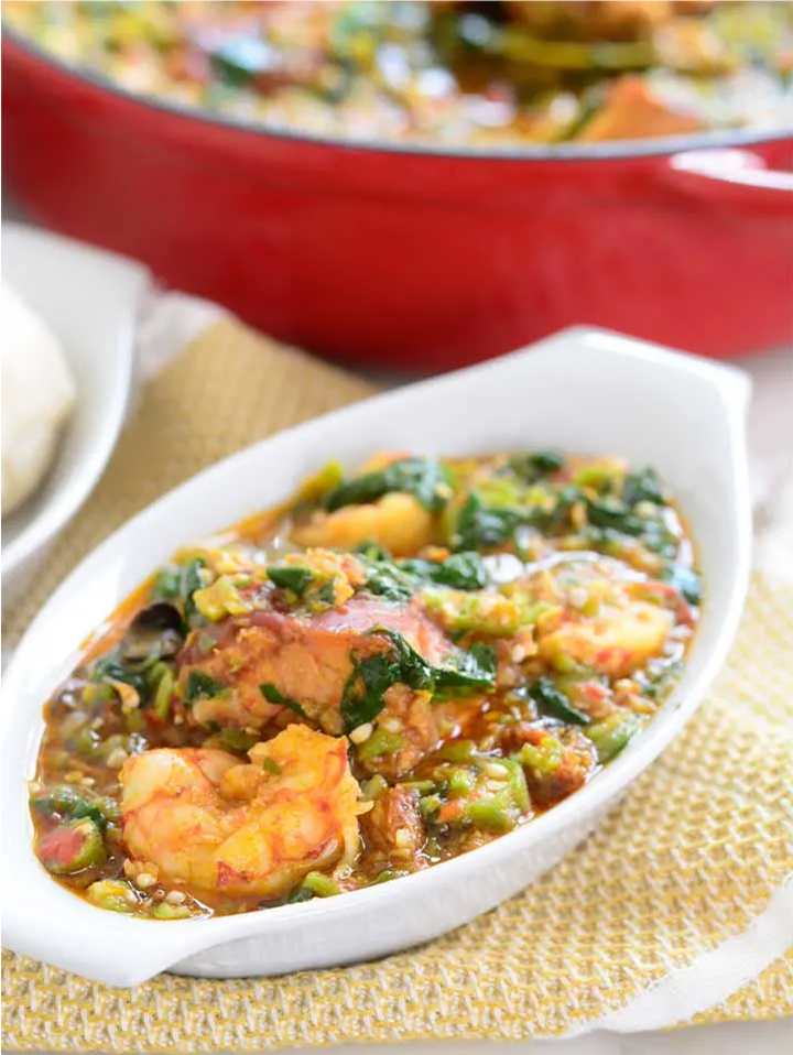 Okra Soup with Fish – (combination of hake, dried catfish and prawns)